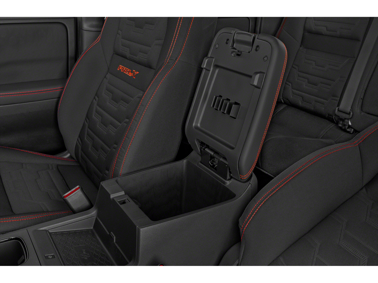 SUPER BLACK, CHARCOAL W/LAVA RED STIT, PRO EMBROIDERED PREMIUM CLOTH SEAT TRIM, [K03] PRO CONVENIENCE PACKAGE, [V02] TECHNOLOGY PACKAGE, [C03] 50 STATE EMISSIONS, [K11] TOW PACKAGE: HITCH, TOW HARNESS, [B94] PRO-4X MUD FLAPS, [F93] OFF-ROAD STYLE STEP RAILS, [F96] ELECTRONIC TAILGATE LOCK, [N93] ILLUMINATED KICK PLATES, [L11] PRO-4X CARPETED FLOOR MATS, [K93] OFF-ROAD PROTECTION PACKAGE