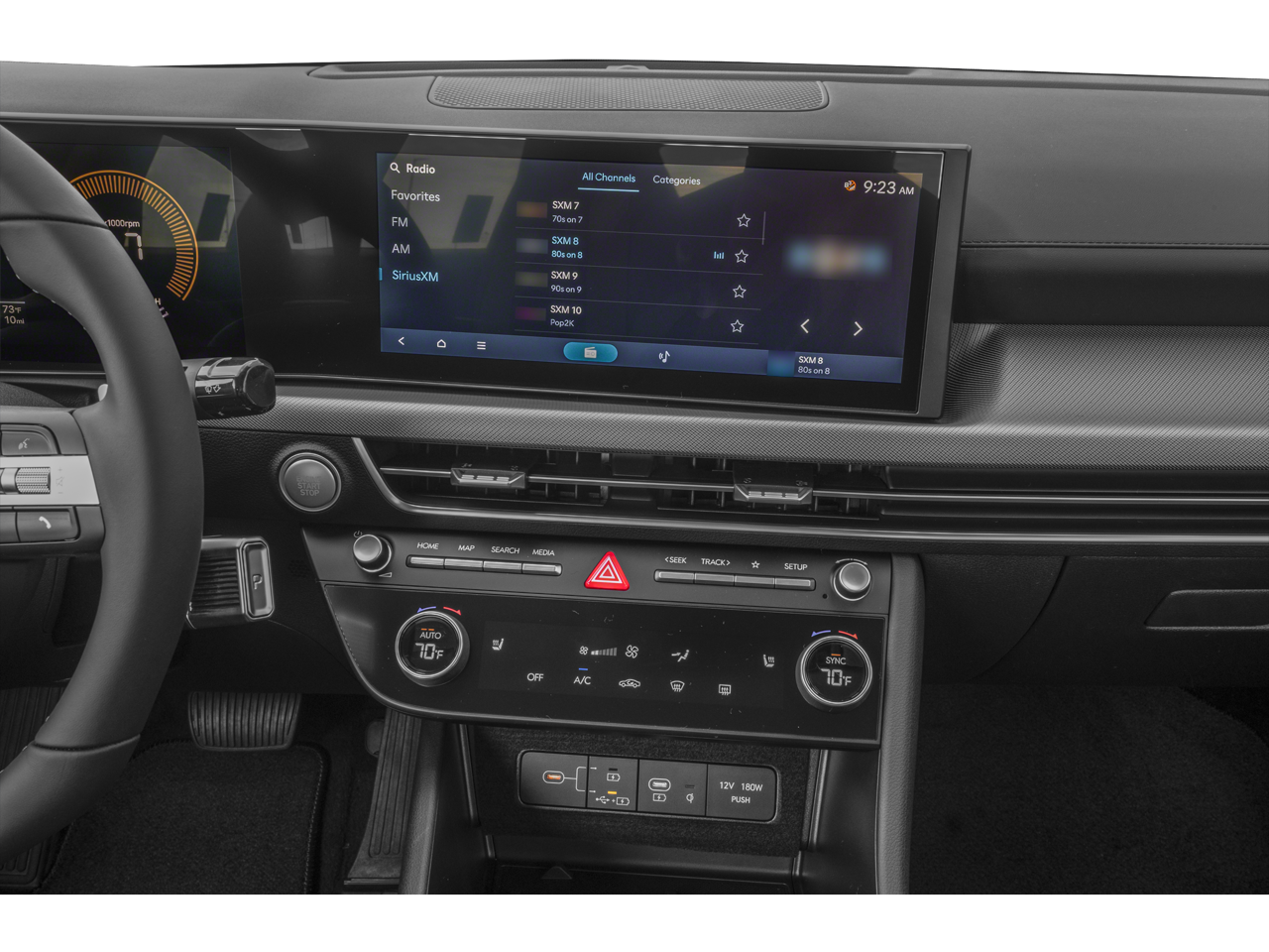 - Radio: AM/FM/HD/MP3/SiriusXM -inc: 12.3" high-resolution touchscreen, 6 speakers (2 front door mounted speakers, 2 tweeters and 2 rear speakers), smartphone integration, Bluetooth®, Over-The-Air updates, USB connectivity, Blue Link+ connected car, Android Auto/Apple CarPlay capability (wireless and wired) and shark fin design antenna w/SiriusXM reception
